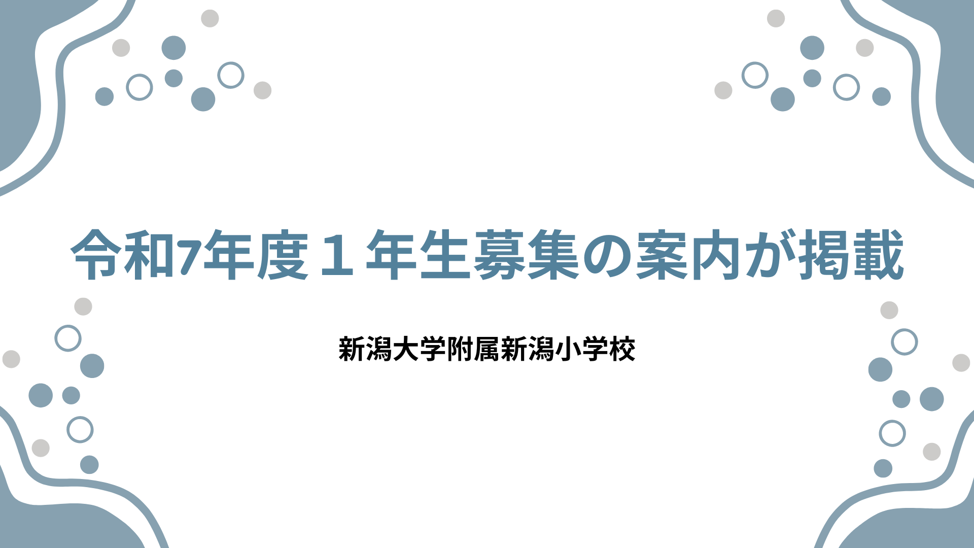 9月に入り、附属新潟小学校ホームページのお知らせに、令和7年度 第一学年児童の募集についての案内が掲載されました。