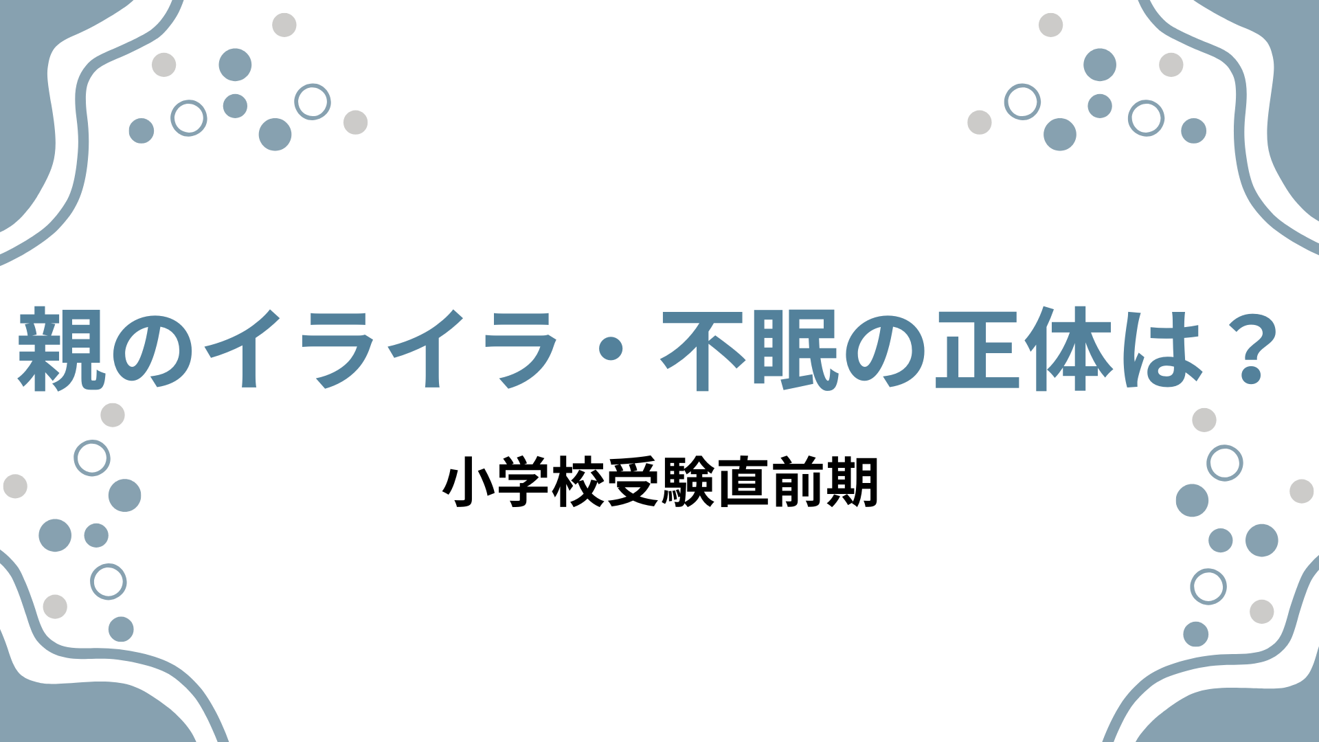 小学校受験直前期 親のイライラ・不眠の正体は?