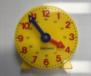けんた君は、家の時計が正しい時こくより4分進んでいると思っています。しかし、本当は常に正しい時こくをさしています。
