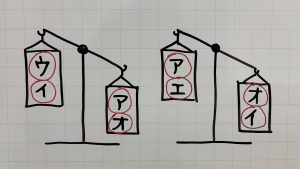 ア、イ、ウ、エ、オの5つのボールがあります。