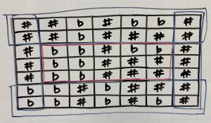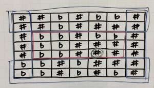 ヒント2 1つ右は♯ ということから、右がない1番右の列は消します。