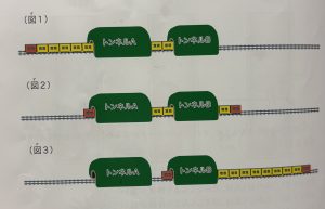 もしトンネルBが3だった場合、図1のトンネルBの前には赤い先頭車両が見えているはずですが、見えていません。なので、トンネルBは3ではなく、4以上だということがわかりました。