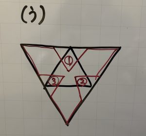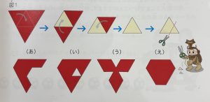 4つ重なったところをハサミで切っているので、正三角形の4つがなくなっています。