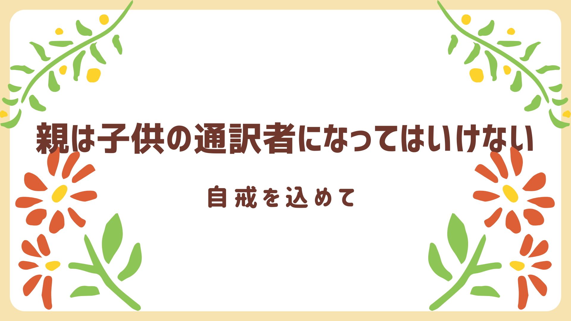 往々にして母親は、子供の通訳者になってしまうのです。 我が子にとって良いようにバイアスをかけて通訳してしまうのも特 徴。