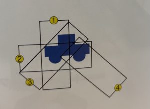 あとは、①と④のタイヤの部分の○の位置を考えて答えを出します。